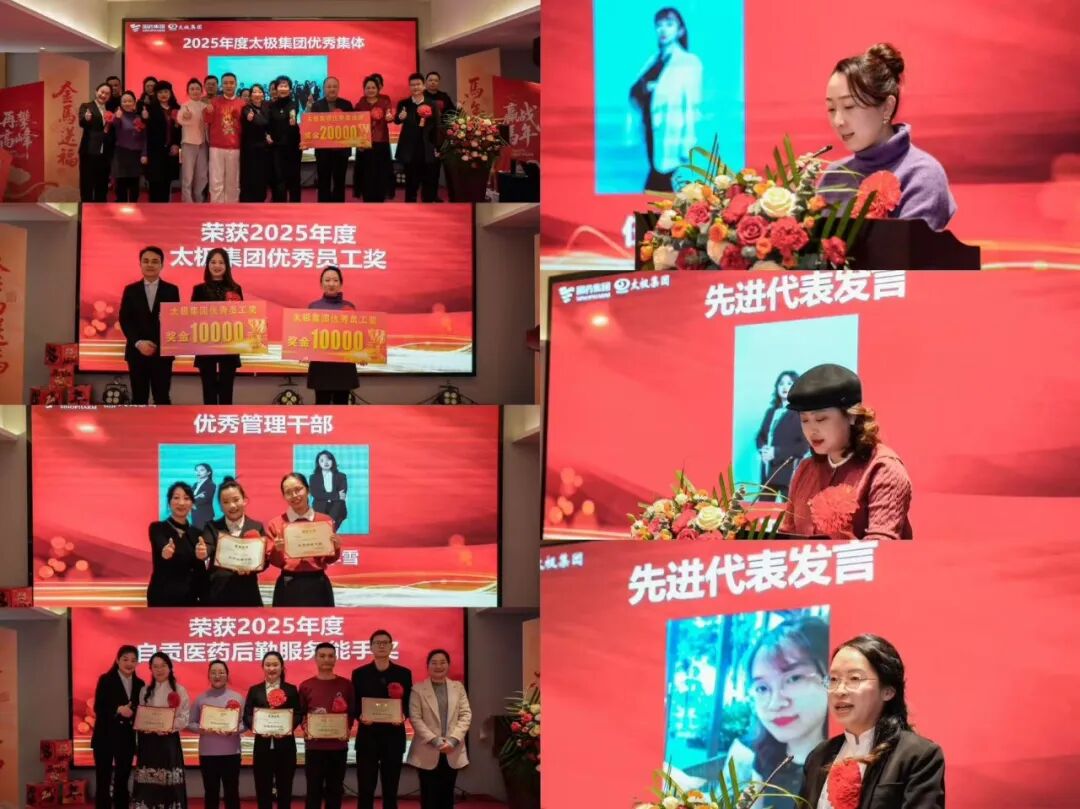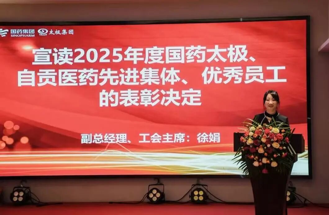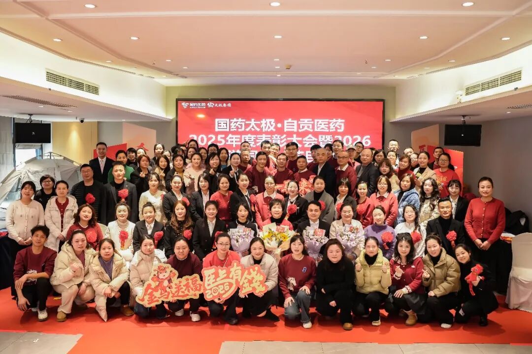 总结部署明方向 谋篇布局谱新章 公司党总支书记、执行董事、总经理谢静以“创新驱动未来,合规铸就长久”为主题,全面总结2025年工作,并对2026年经营计划进行安排部署。2025年是“十四五”规划收官之年,公司以党建引领促发展,超额完成集团12项指标任务,实现销售、利润双增长。 谢总强调,2026年是“十五五”开局关键之年,公司锚定经营目标,部署六大核心工作:一是做强供应链建设,借力优质资源拓展合作、丰富品类,持续扩大营销阵地;二是深化公司“8531”中长期发展规划,做精做优中药、器械两大特色板块;三是推动连锁板块开源节流、提质增效,做强DTP药房和诊所“+”药房;四是深挖零售终端与川南分销市场潜力,稳步提升业务规模与市场份额;五是强化内控管理,抓实人才培养与薪酬激励,严控经营风险,全面提升全员综合素质;六是以党建为引领深化“党建 + X”项目,成立党员攻坚小组,靶向破解发展瓶颈。 她号召全体职工拿出跃马扬鞭的勇气,以笃行实干推动公司高质量发展,奋力决胜“十五五”开局攻坚战。表彰先进树标杆 凝心聚力共奋进 公司副总经理、工会主席徐娟宣读2025年度国药太极、自贡医药先进集体及优秀员工表彰决定。文件对2025年度在各条战线上履职尽责、实绩突出的先进集体和优秀员工予以表彰,肯定了他们实干担当、攻坚克难的奋斗精神,以及推动公司高质量发展作出的重要贡献。徐总同时号召获奖者珍惜荣誉、再创佳绩,全体职工要以先进为标杆,见贤思齐、奋勇争先,将榜样力量转化为干事创业的实际行动,为公司发展注入新动能。荣耀时刻展风采 榜样力量引前行 大会举行隆重颁奖典礼,获奖先进集体及优秀员工依次登台领奖,现场掌声如潮,既是对获奖者的肯定赞许,更是对全体职工的激励期许。获奖代表登台分享感言,畅谈获奖心得与奋斗目标,纷纷表示荣誉属于团队与公司,未来将以更高标准立足岗位、实干争先,努力为公司高质量发展贡献力量。